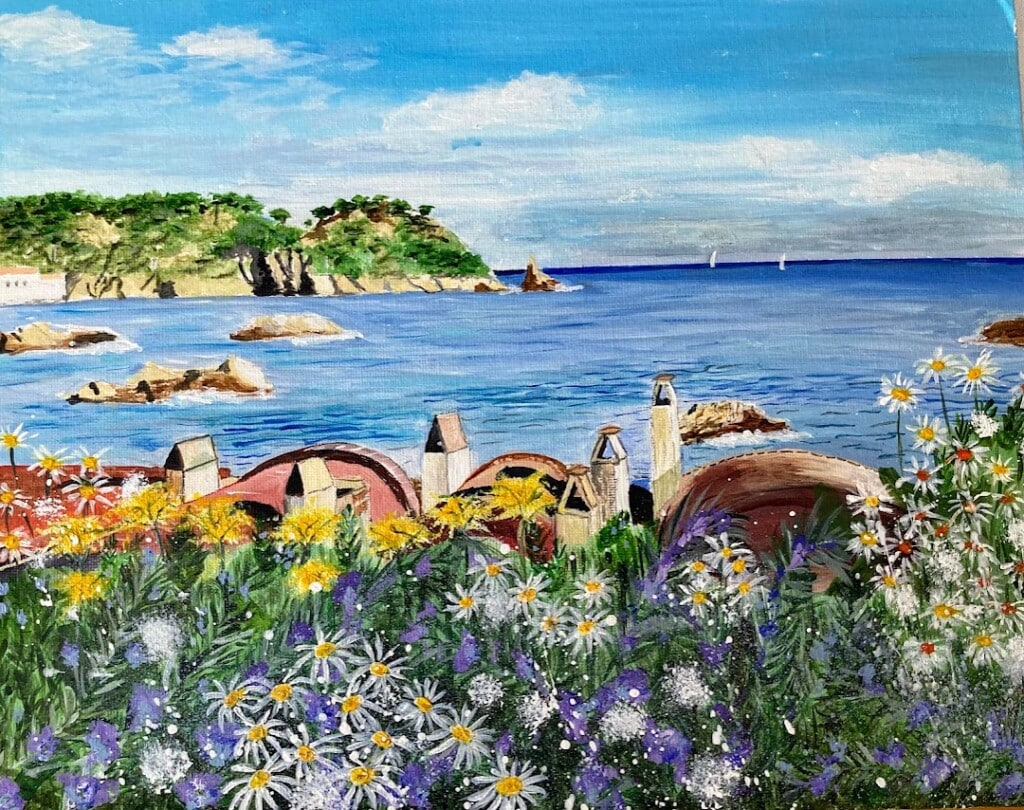 We are a group of Art enthusiasts who meet up every 2nd and 4 th Thursday in the morning at Gualta Pitch & Putt Par 3 course. We are all happy to share ideas and welcome new ones. In the past we have worked with many different topics including Haiku illustrations, Japanese themed landscapes as well as still life and many others.